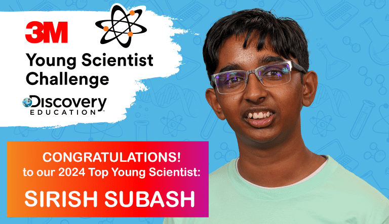ST. PAUL, Minn. & CHARLOTTE, N.C. (Wednesday, October 16, 2024) – 3M (@3M) and Discovery Education (@DiscoveryEd) named Sirish Subash, a 9th grader at Gwinnett School of Mathematics, Science, and Technology in Snellville, Georgia, the winner of the 2024 3M Young Scientist Challenge, the nation’s premier middle school science competition. Sirish set himself apart with an AI handheld pesticide detector. As the grand prize winner, he received a $25,000 cash prize and the prestigious title of “America’s Top Young Scientist.”